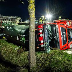 29-letni kierowca ciężarówki przewożącej gnojowicę zasnął za kierownicą i przewrócił pojazd wjeżdżając w rondo, rozlewając część ładunku i doznając poważnych obrażeń. Wypadek przypomina, jak krytyczne są odpoczynek, zapięte pasy bezpieczeństwa i dostosowanie prędkości do warunków oraz rodzaju przewożonego ładunku w pracy jako kierowca C+E i praca jako kierowca ciężarówki.