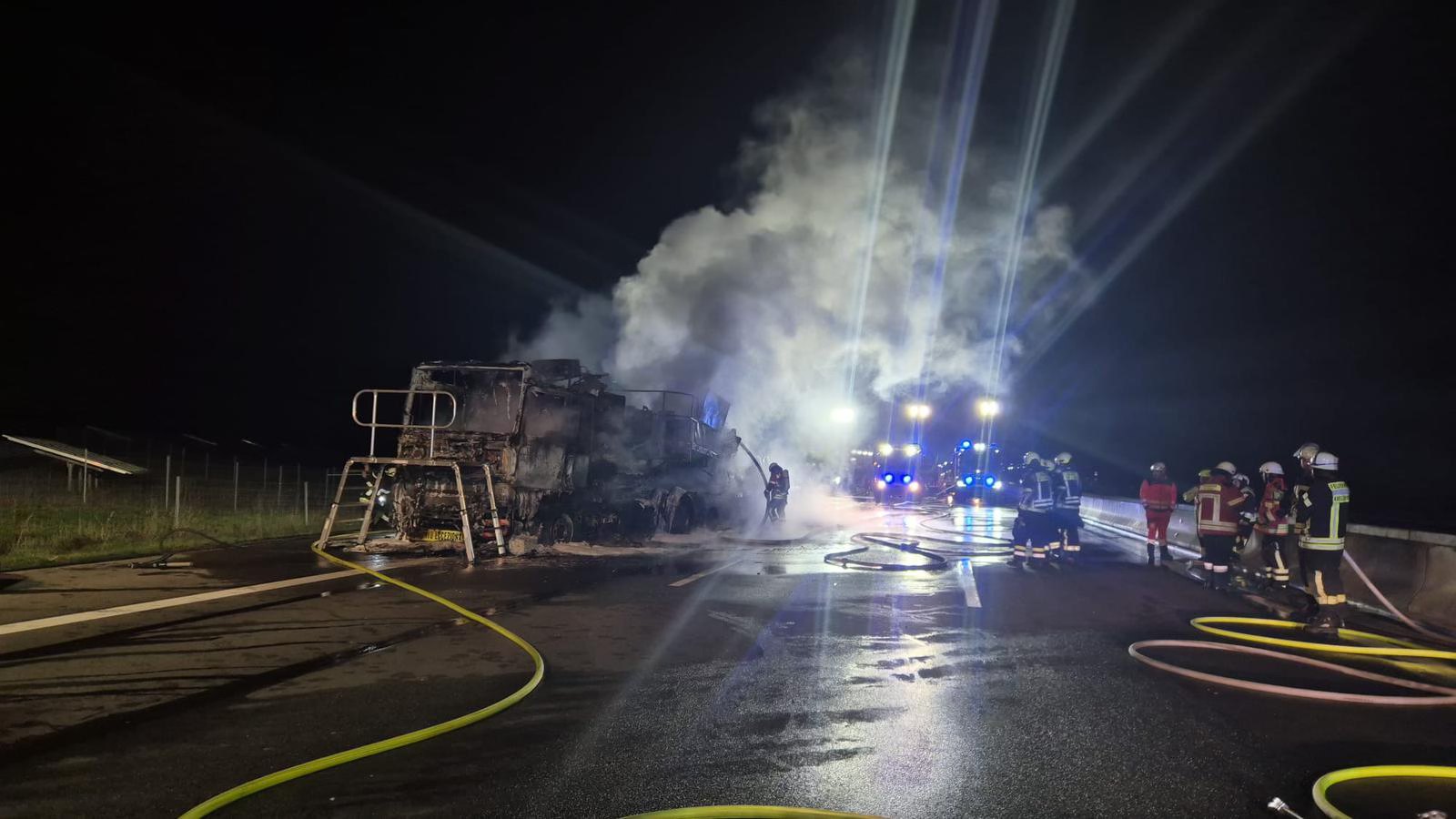 Po opanowaniu pożaru udało się ponownie otworzyć jezdnię w kierunku Norymbergi. Natomiast pasy w stronę Frankfurtu przez wiele godzin pozostawały zamknięte z powodu skomplikowanej operacji usuwania spalonego zestawu oraz ciężkiego ładunku.