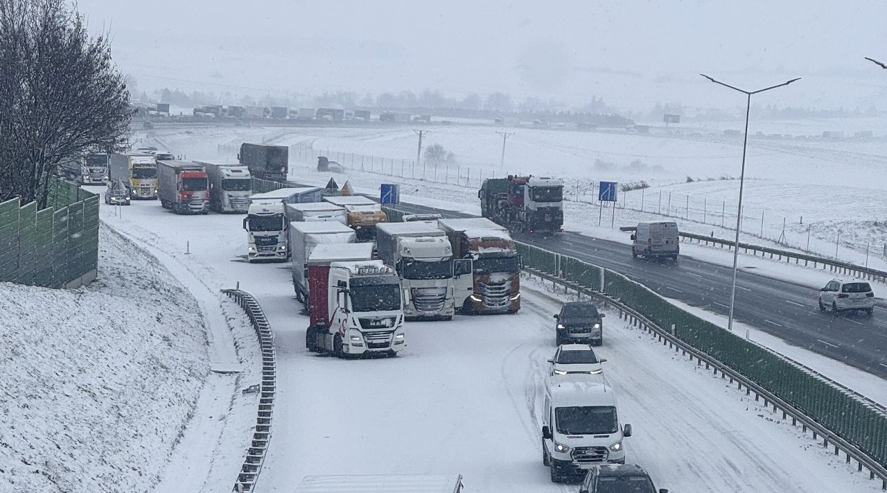 Początek problemów był pozornie niegroźny. Kierowca jednego z samochodów ciężarowych zaczął tracić przyczepność na oblodzonym podjeździe i musiał zatrzymać zestaw. Kolejne tiry, nie mając możliwości ominięcia przeszkody, natychmiast utknęły za nim, skutecznie blokując ruch na całym pasie.