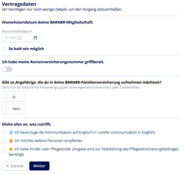 chstartdatum deiner BARMER-Mitgliedschaft:- Preferowana data rozpoczęcia ubezpieczenia w Barmer: