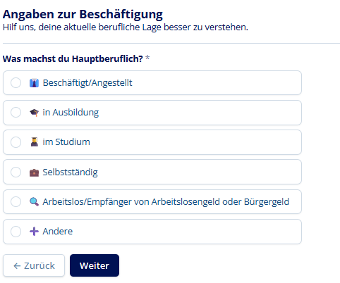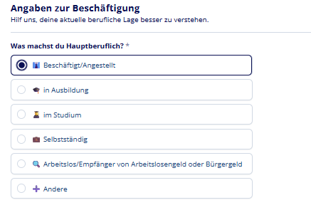 Ich habe meine Rentenversicherungsnummer griffbereit. - możesz zaznaczyć tę odpowiedź, jeśli masz już nadany swój numer ubezpieczenia emerytalnego