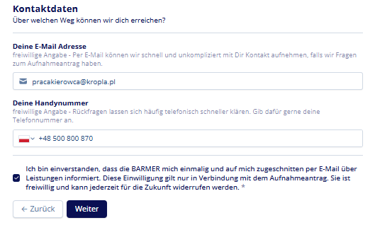Wunschstartdatum deiner BARMER-Mitgliedschaft:- Preferowana data rozpoczęcia ubezpieczenia w Barmer: