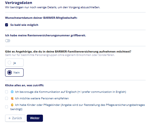 Gibt es Angehörige, die du in deine BARMER-Familienversicherung aufnehmen möchtest? - czy są jacyś krewni, których chciałbyś objąc ubezpieczeniem w Barmer?